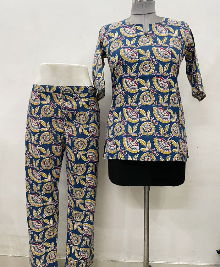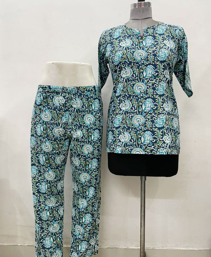 Relax in ultimate comfort with our Cotton Night Suit, designed for effortless daily wear for women. Crafted from soft, breathable cotton, this set ensures a cozy and peaceful night's sleep or comfortable lounging. The pyjama features practical side pockets, adding convenience to its relaxed fit. Embrace comfort and style with this essential addition to your loungewear collection!Top Length -28 InchesBottom Length -37 inches