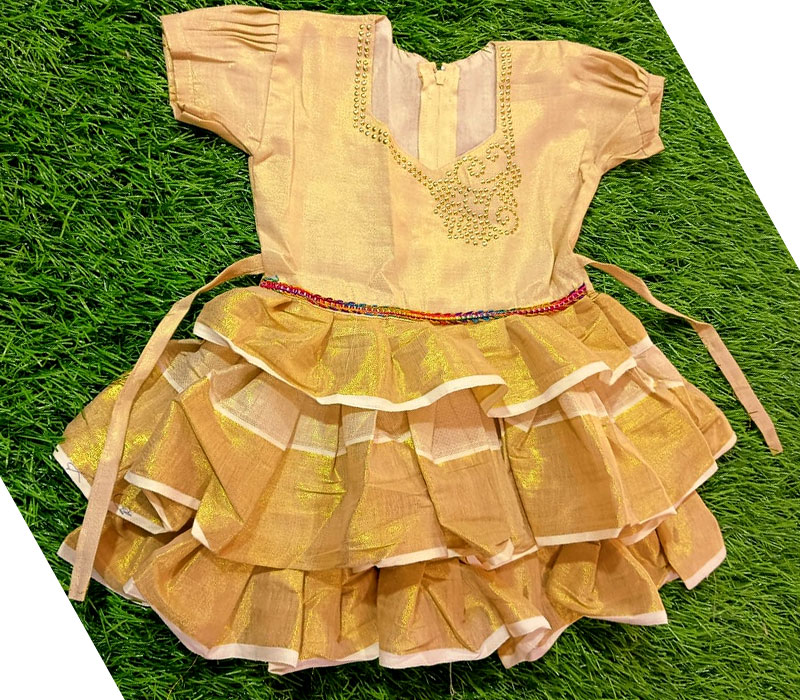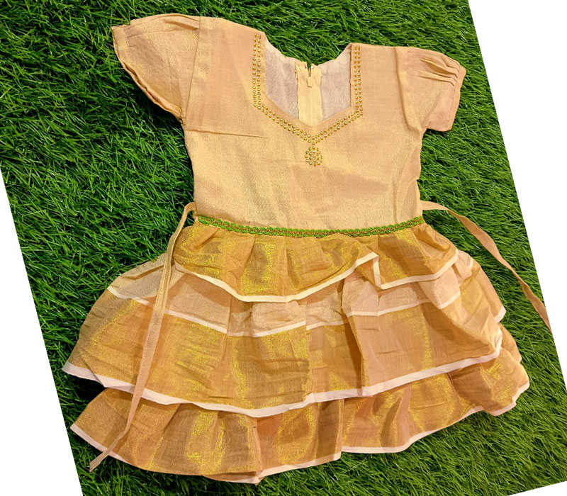 Introduce your little one to the elegance of traditional Kerala craftsmanship with this charming cotton frock from Kuthampully. Made from premium quality cotton, this frock ensures comfort and breathability, perfect for your child’s delicate skin. The intricate handloom patterns reflect the rich heritage of Kuthampully weaving, making it a unique addition to your child’s wardrobe. Ideal for festive occasions or casual wear, this frock combines tradition with modern style, ensuring your child looks adorable and feels comfortable all day long. Material: 100% Pure Cotton Design: Traditional Kuthampully Handloom Patterns. Comfort: Soft and Breathable Fabric. Occasions: Suitable for Festive and Casual Wear. Care Instructions: Machine Washable, Easy to Maintain Dress your child in the timeless beauty of Kuthampully handloom with this exquisite cotton frock.