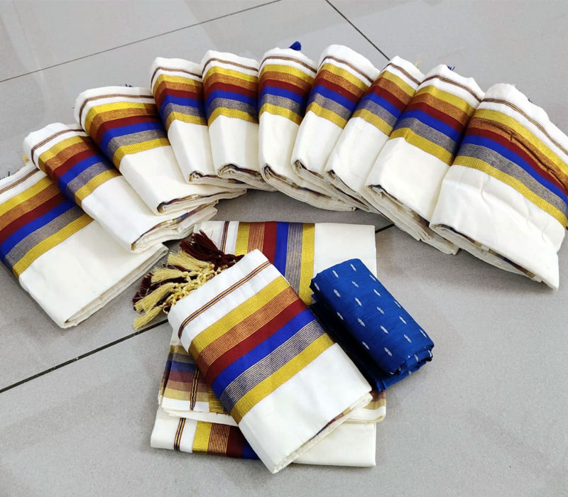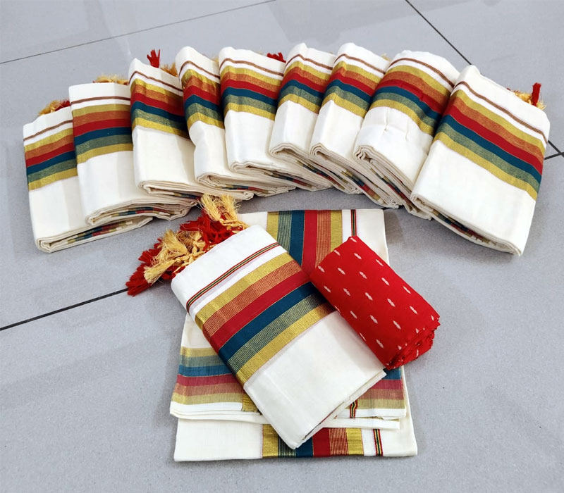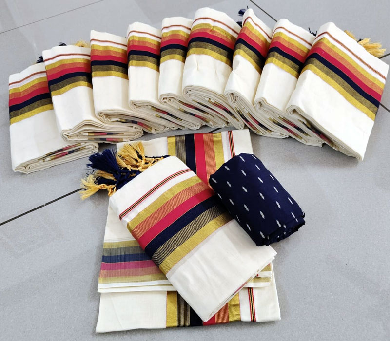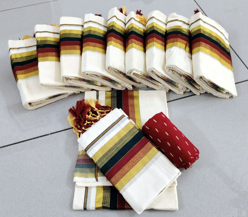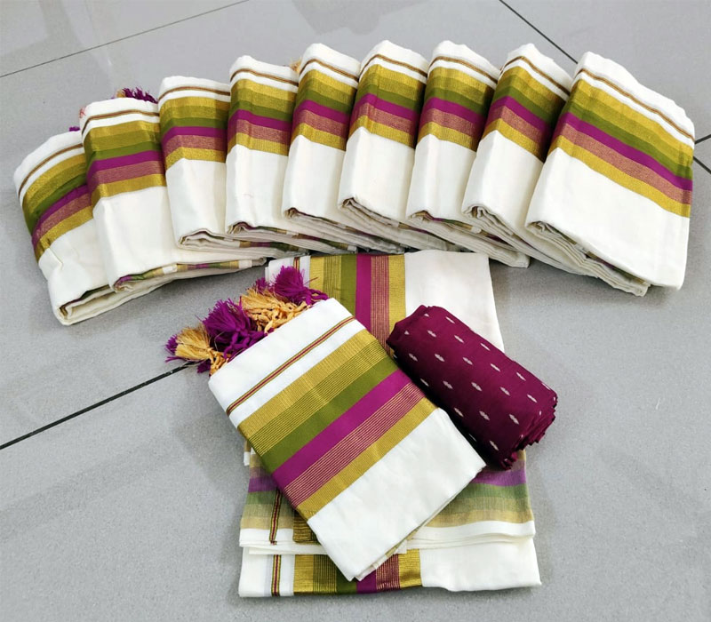 Kerala traditional setmund cotton material with Kunjanam with blouse. Setmundu length: 2.80m