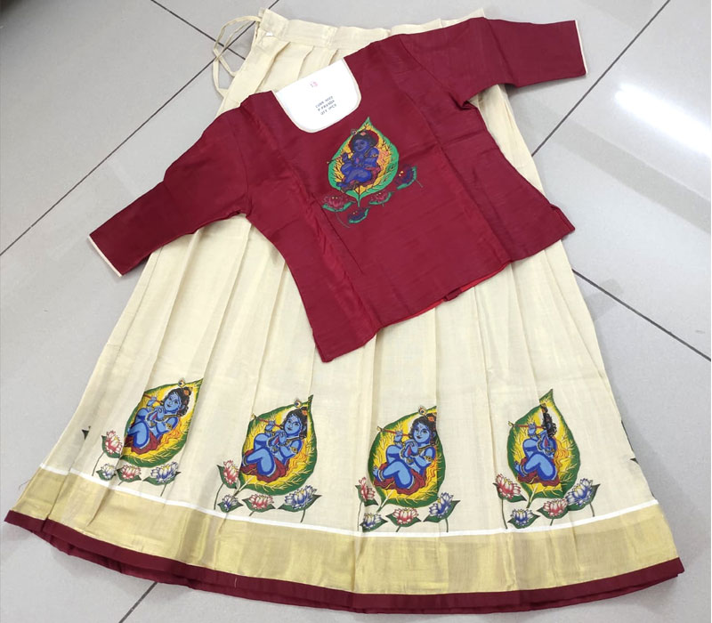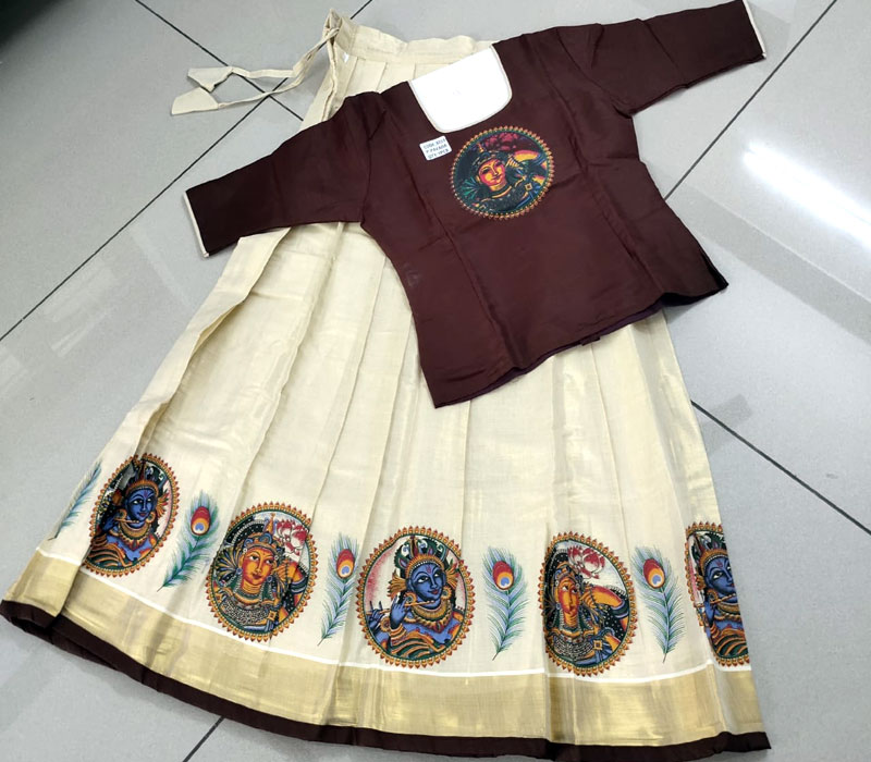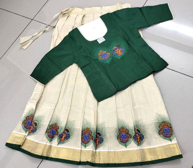 Pattupavada silk skirt and blouse with lining for kids. Design type: mural prints. Size for age 1 year to 10 years.