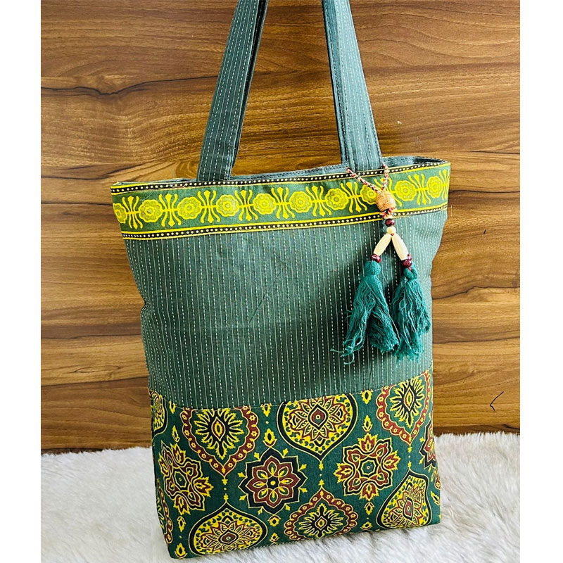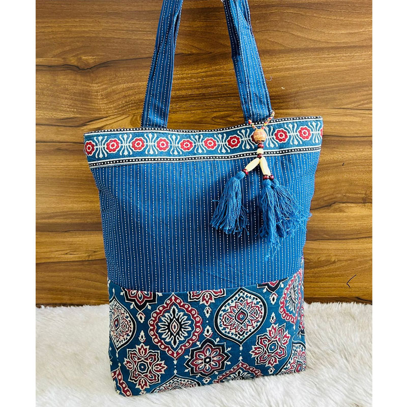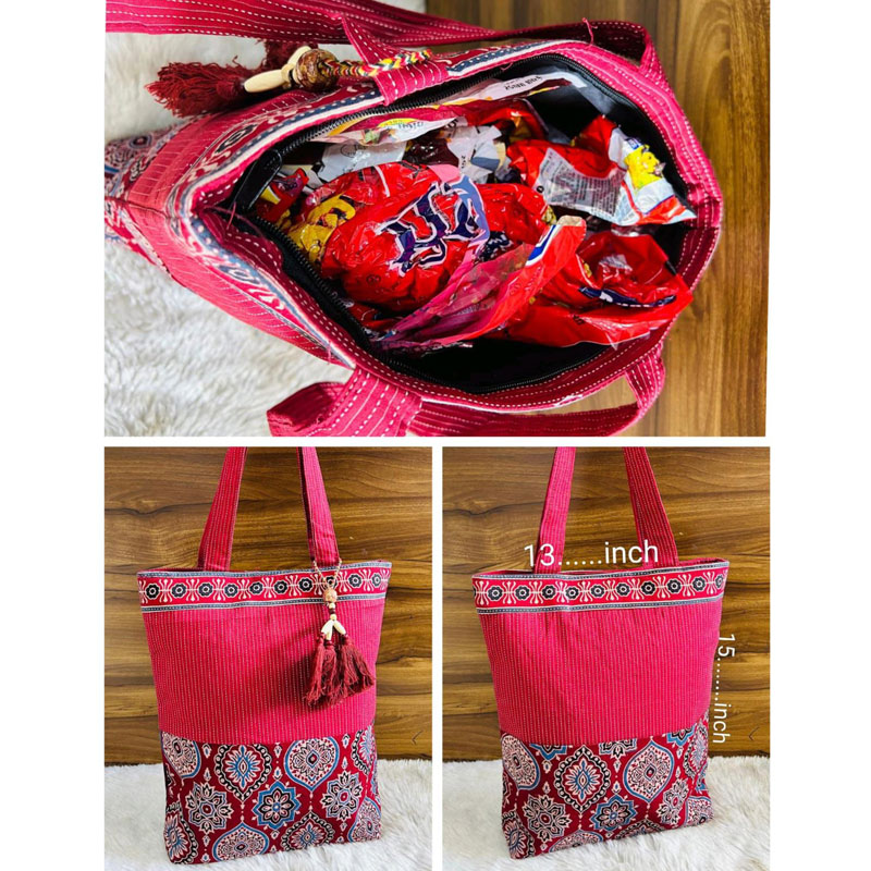Premium quality spacious Ajrakh Print Handbag for women suitable for daily and occasional use. This bag comes with inside pockets and zip closer. Size: 13 x 15 inch