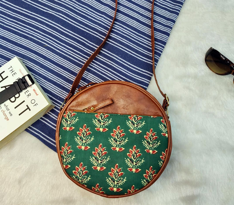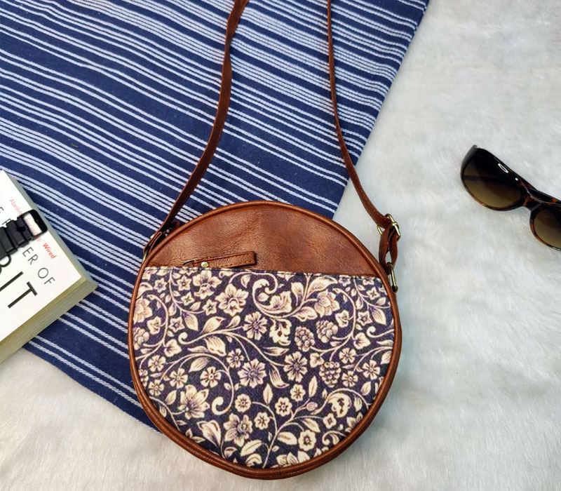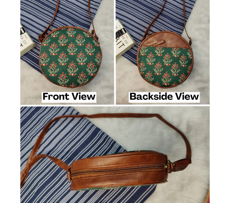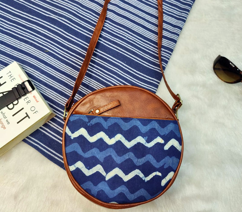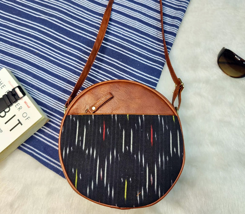 Ikkat Printed Sling bag with vegan leatherite detailing for women, a perfect blend of style and functionality. This compact yet spacious sling bag features single zip partition and Frontside zip pocket can be used for keys and changes for organized storage. The adjustable long belt ensures a comfortable fit, making it ideal for daily use. Crafted with quality materials, this sling bag is both durable and stylish. Size: 8 inches