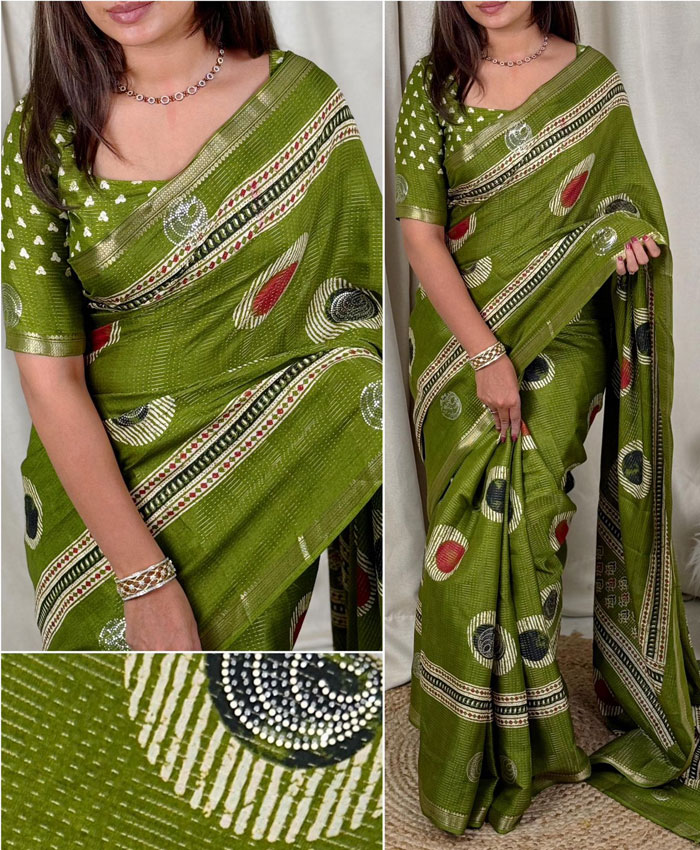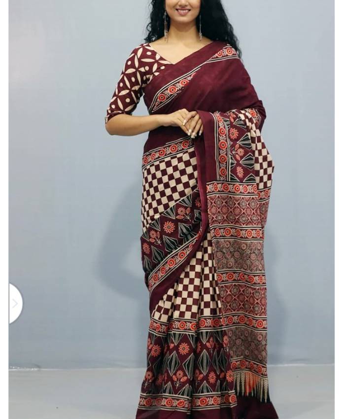 Premium quality triple dye cotton saree for women with blouse