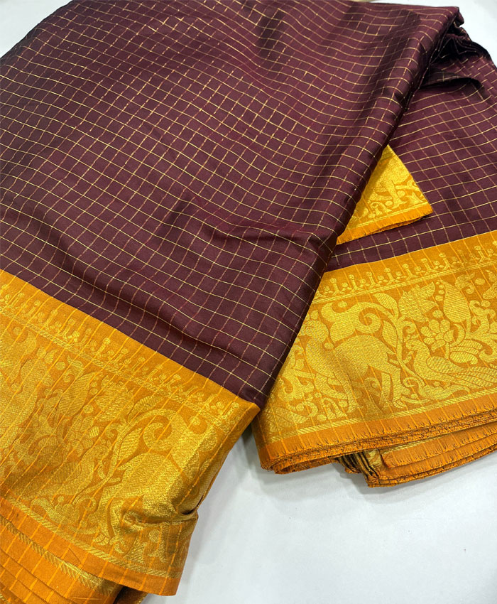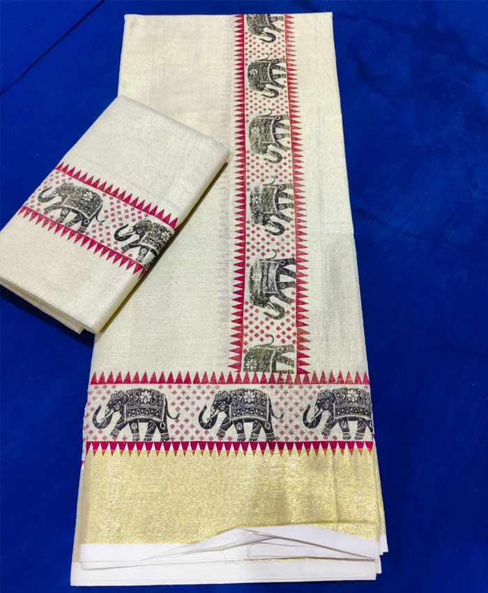 Elegant Tissue Setmundu with Elephants and Temple Border
