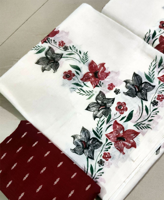 Kuthampully Cotton Fancy Set Mundu