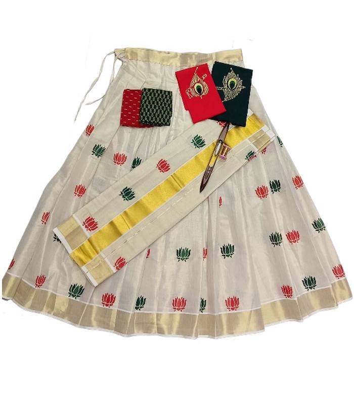 Kerala Traditional Tissue Dhavani Set Mural Print with Blouse