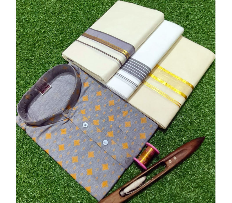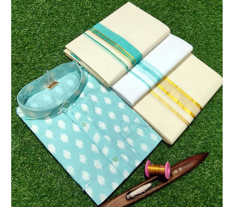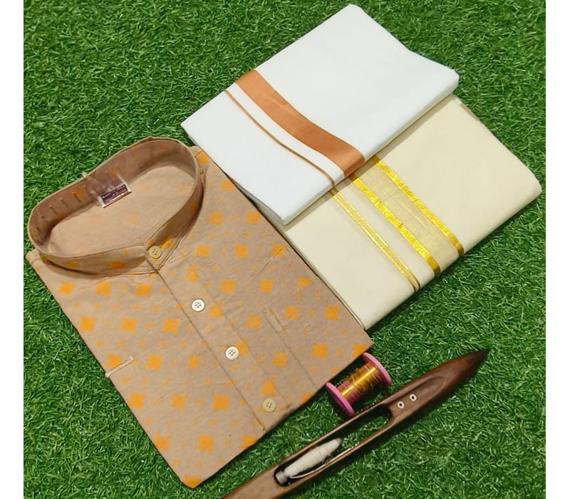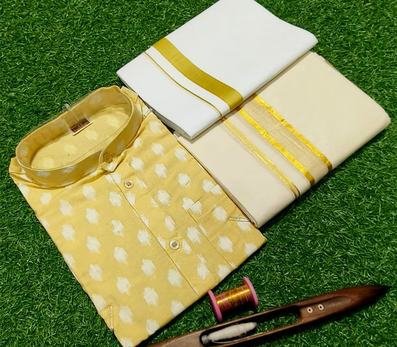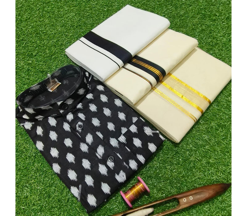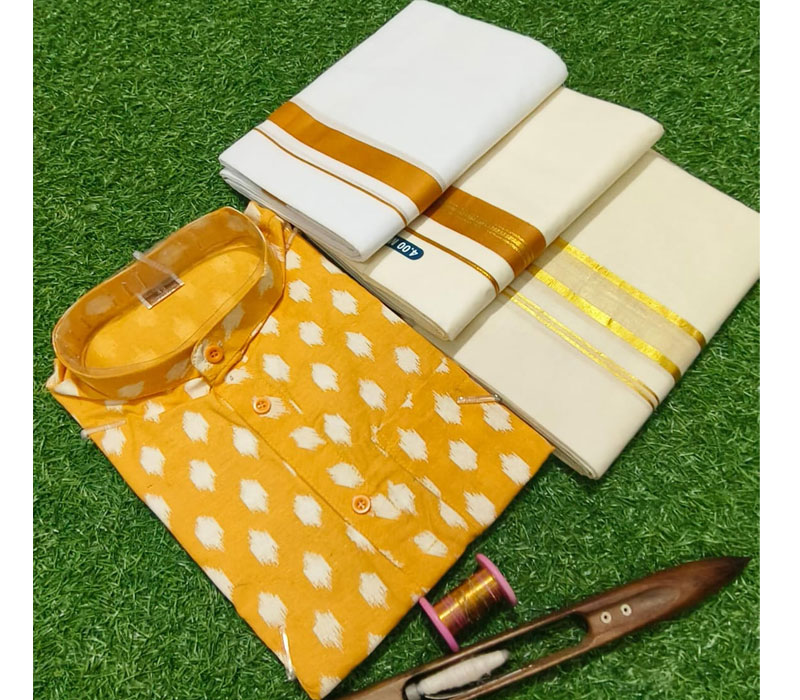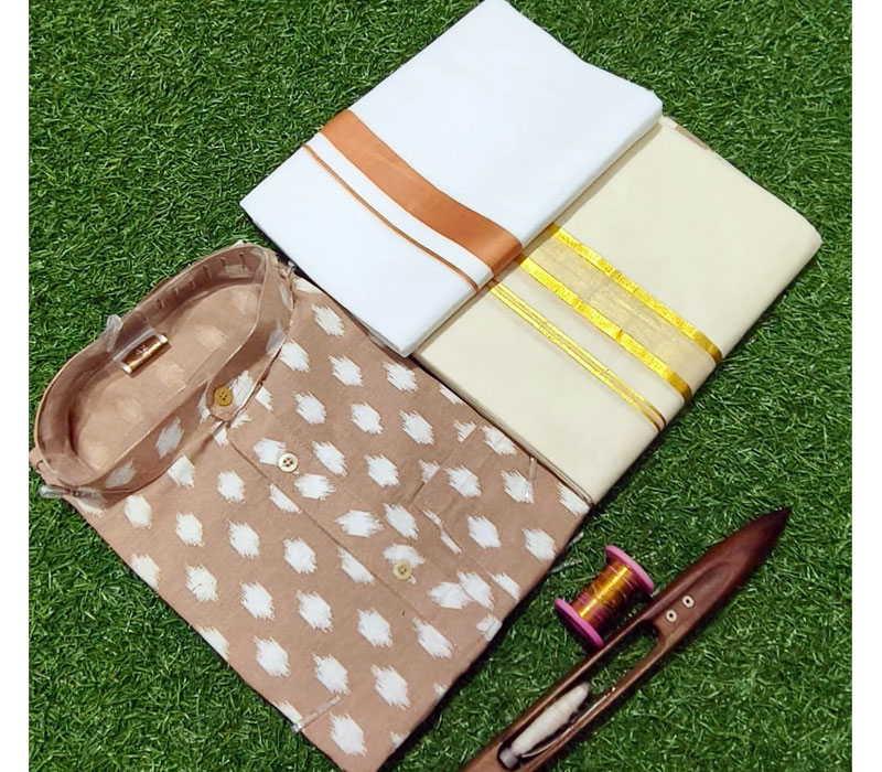 Experience the timeless charm of Kerala with our authentic Kuthampully cotton kurta and dhoti set. Perfect for festive occasions and everyday wear. Embrace Tradition by Indulging in the comfort and style of our handwoven Kuthampully cotton kurta and dhoti set. Crafted with the finest quality cotton, this traditional attire is perfect for any occasion. Choose any border color for dhoti.