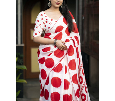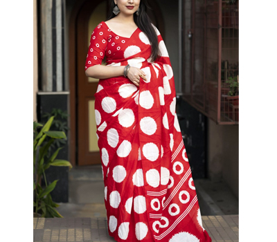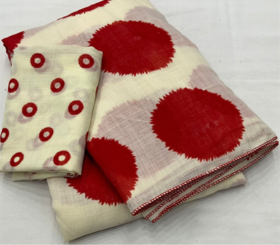 Soft Linen Saree with Batik Style with Dot Prints. Blouse: Running blouse