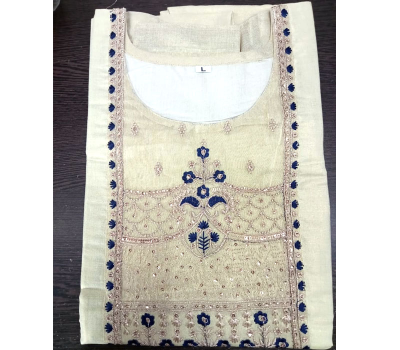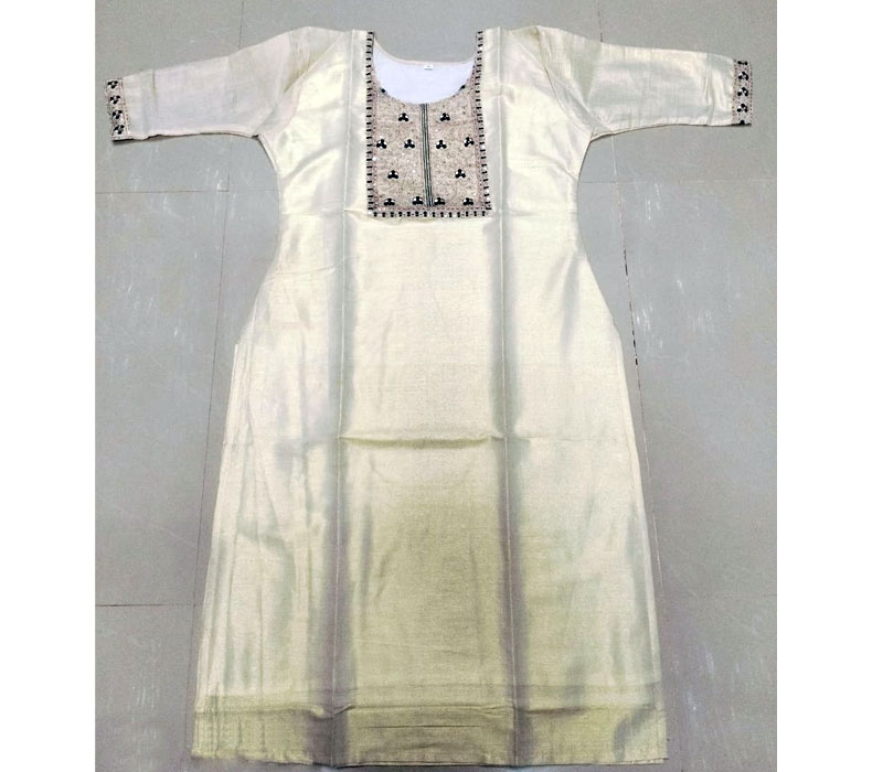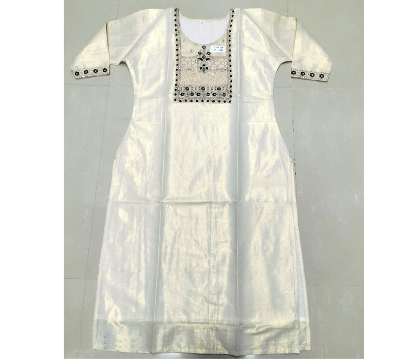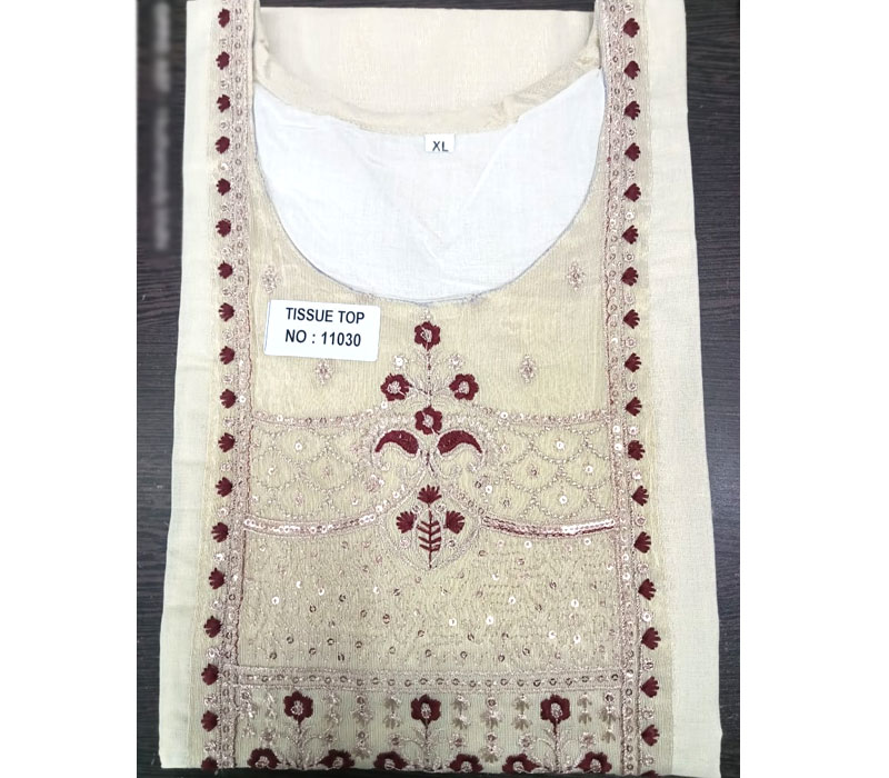 Traditional Readymade Tissue Churidar Top with Embroidery Work