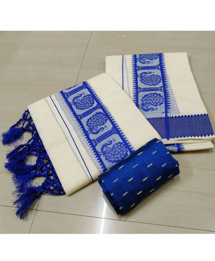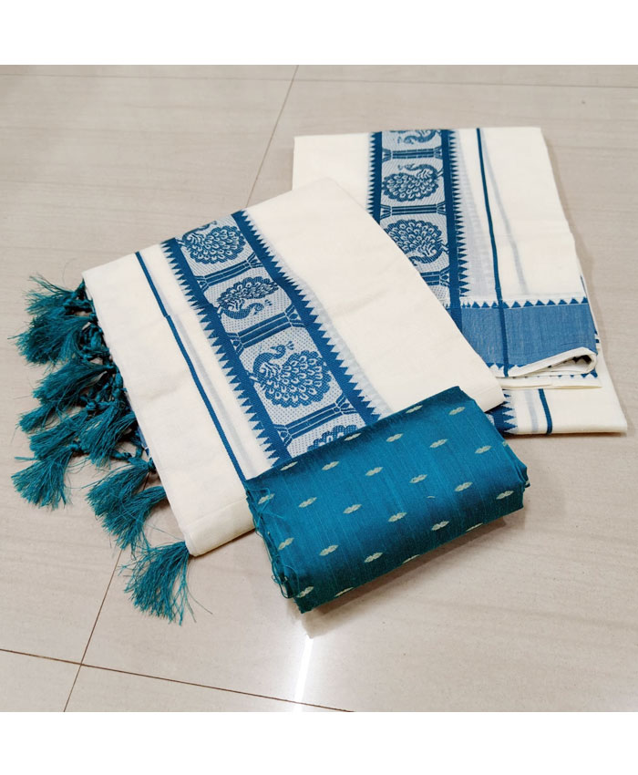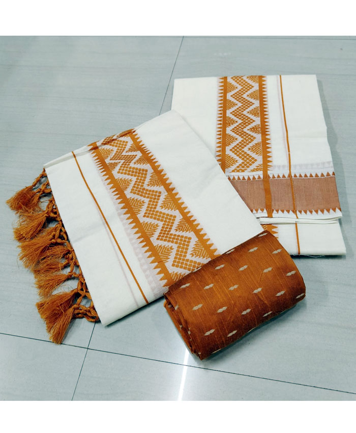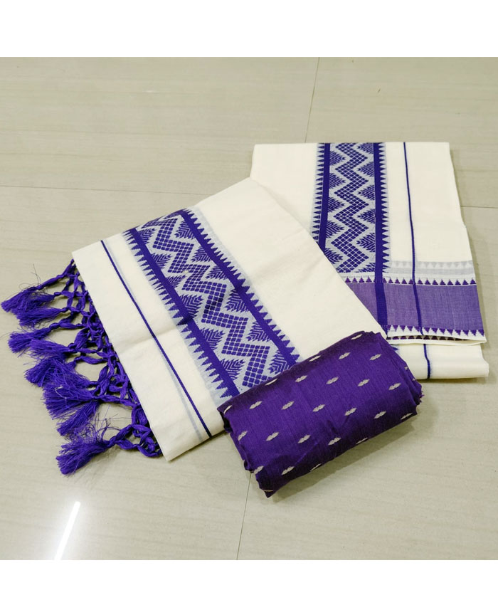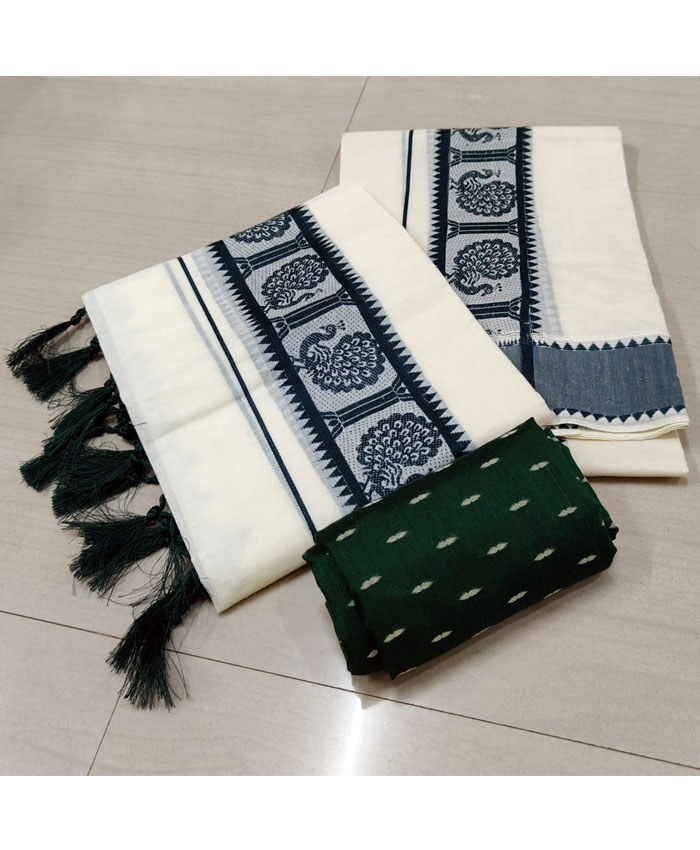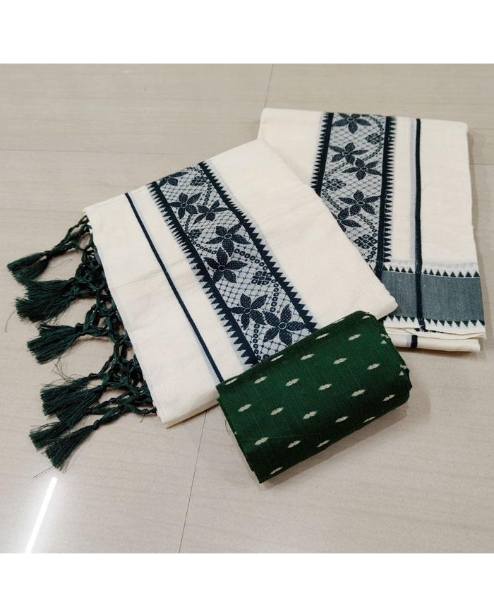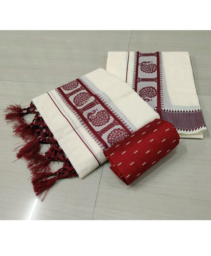 Experience the authentic charm of Kerala with our exquisite Cotton Set Mundu, meticulously hand-thread worked by the skilled artisans of Kuthampully. This traditional two-piece ensemble is crafted from soft, breathable cotton, ensuring exceptional comfort. The highlight of this set mundu is the intricate thread work that adorns its borders and motifs, adding a touch of refined elegance. Completing this classic look, the pallu is beautifully finished with delicate Kunjalam (tassels), symbolizing traditional grace. Perfect for festive occasions, cultural events, or daily wear, this Kuthampully set mundu embodies the rich heritage of Kerala handlooms.