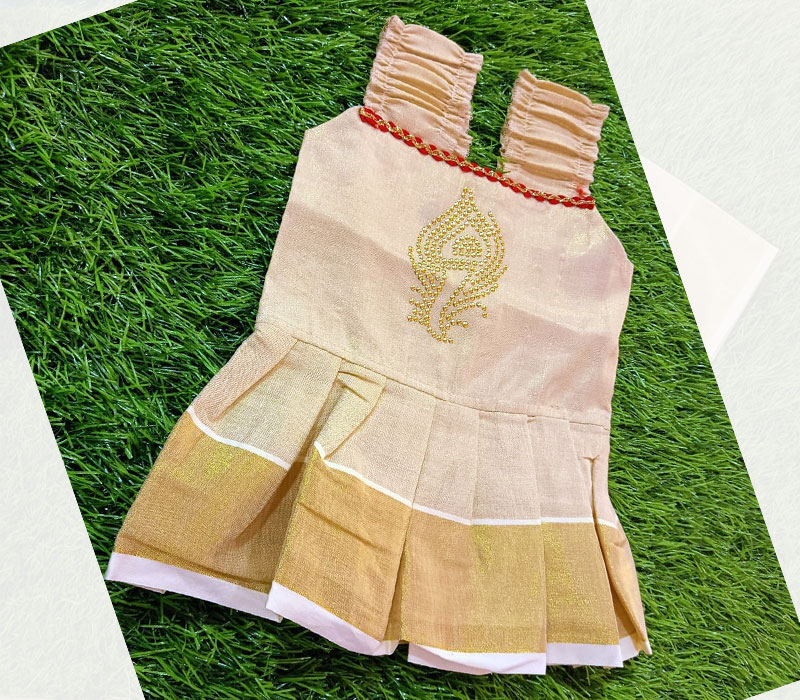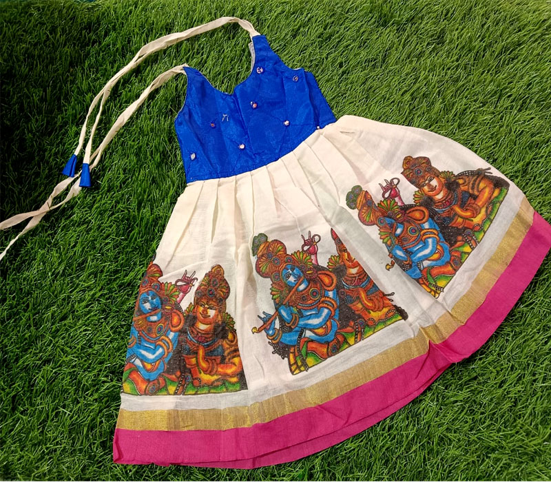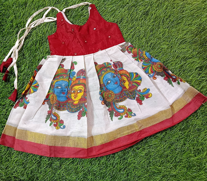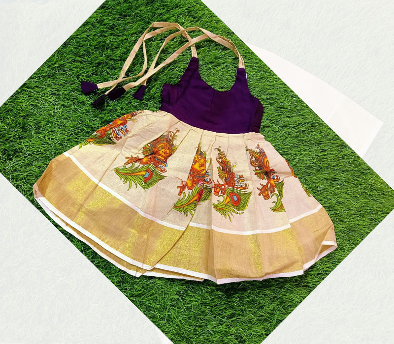 Introduce your little one to the elegance of traditional Kerala craftsmanship with this charming cotton frock from Kuthampully. Made from premium quality cotton, this frock ensures comfort and breathability, perfect for your child’s delicate skin. The intricate handloom patterns reflect the rich heritage of Kuthampully weaving, making it a unique addition to your child’s wardrobe. Ideal for festive occasions or casual wear, this frock combines tradition with modern style, ensuring your child looks adorable and feels comfortable all day long. Material: 100% Pure Cotton Design: Traditional Kuthampully Handloom Patterns. Comfort: Soft and Breathable Fabric. Occasions: Suitable for Festive and Casual Wear. Care Instructions: Machine Washable, Easy to Maintain Dress your child in the timeless beauty of Kuthampully handloom with this exquisite cotton frock.