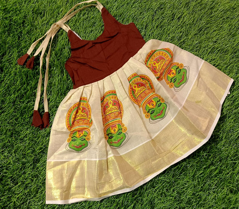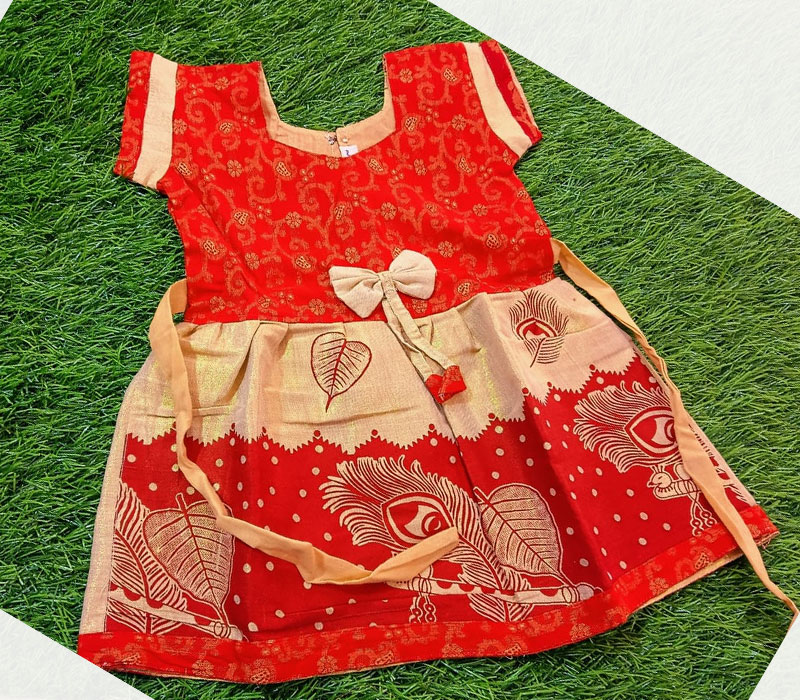 Introduce your little one to the elegance of traditional Kerala craftsmanship with this charming cotton frock from Kuthampully. Made from premium quality cotton, this frock ensures comfort and breathability, perfect for your child’s delicate skin. The intricate handloom patterns reflect the rich heritage of Kuthampully weaving, making it a unique addition to your child’s wardrobe. Ideal for festive occasions or casual wear, this frock combines tradition with modern style, ensuring your child looks adorable and feels comfortable all day long. Material: 100% Pure Cotton Design: Traditional Kuthampully Handloom Patterns. Comfort: Soft and Breathable Fabric. Occasions: Suitable for Festive and Casual Wear. Care Instructions: Machine Washable, Easy to Maintain Dress your child in the timeless beauty of Kuthampully handloom with this exquisite cotton frock.