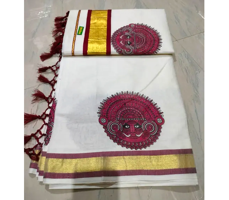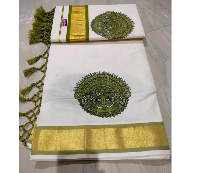 Kuthampully Cotton Fancy Set Mundu with running blouse suitable for festivels.