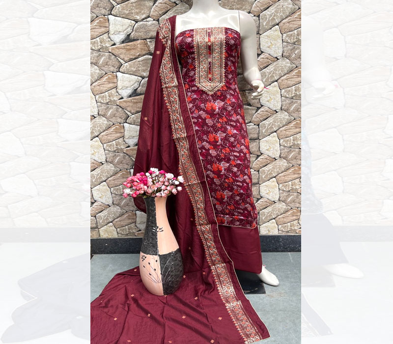 Premium quality satin Cotton Printed Churidar Material with Beautiful Embroidery Work on Neck. Dupatta Silk Dory Work, Top. 2.50 Mtr, Bottom. 2.50 Mtr, Dupatta. 2.25 Mtr
