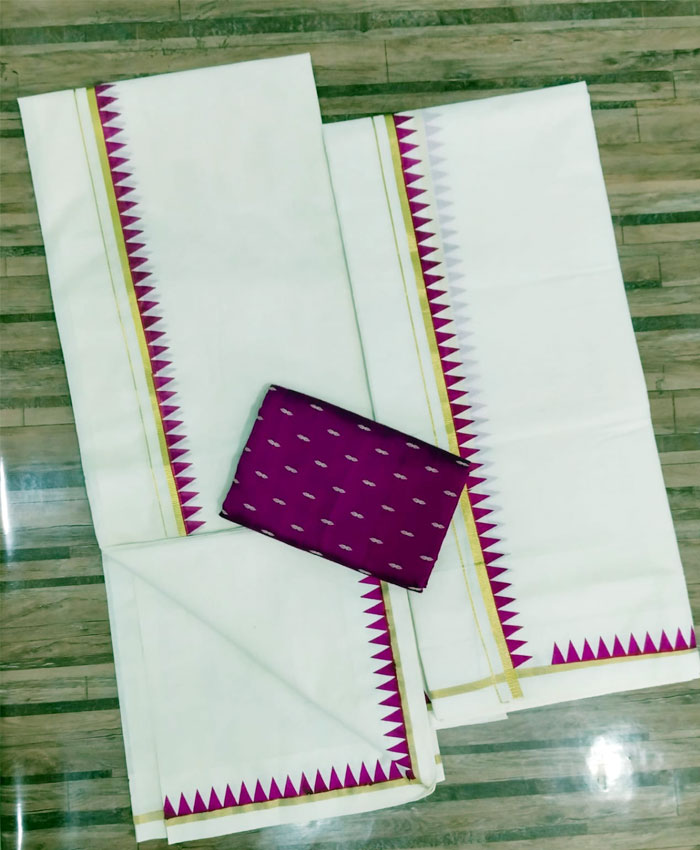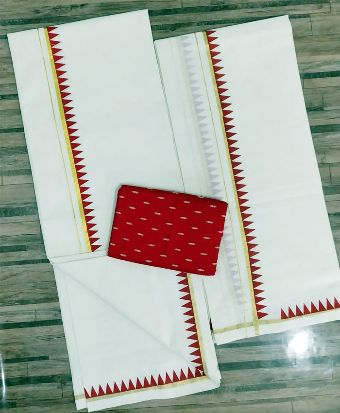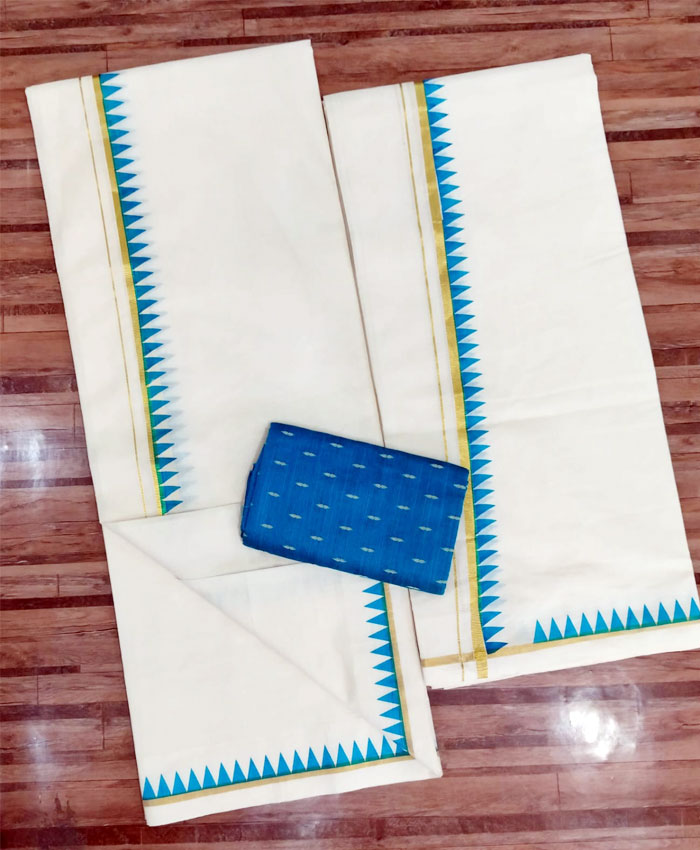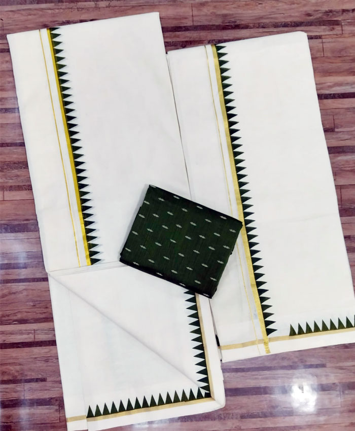 Embrace the divine elegance of Kerala with our Serene Light Kasavu Temple Print Mulloth Cotton Setmundu. Crafted from soft and breathable Mulloth Cotton, this setmundu offers exceptional comfort and a graceful drape. It features a delicate light kasavu border that adds a subtle shimmer, beautifully complemented by an intricate temple print that evokes traditional artistry. With a generous 2.80-meter length, this setmundu is perfect for festive occasions, temple visits, or any event where you wish to exude a blend of cultural grace and comfort.