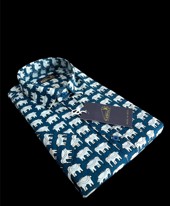 Discover the rich heritage of block printing with our Artisanal Azrakh Cotton Half-Sleeve Shirt. This shirt is made from 100% premium cotton, a lightweight and breathable fabric perfect for everyday wear. The shirt features a traditional Azrakh print, known for its intricate geometric and floral patterns and rich, earthy colors. The half-sleeve design offers a relaxed and stylish fit, making this shirt a perfect blend of comfort, tradition, and modern style.