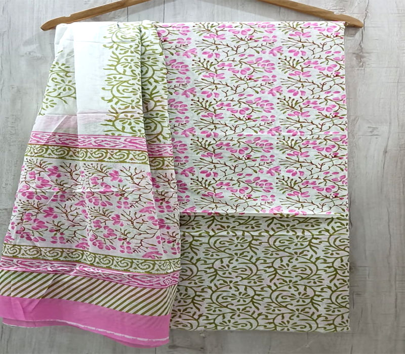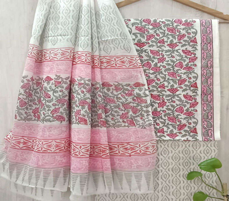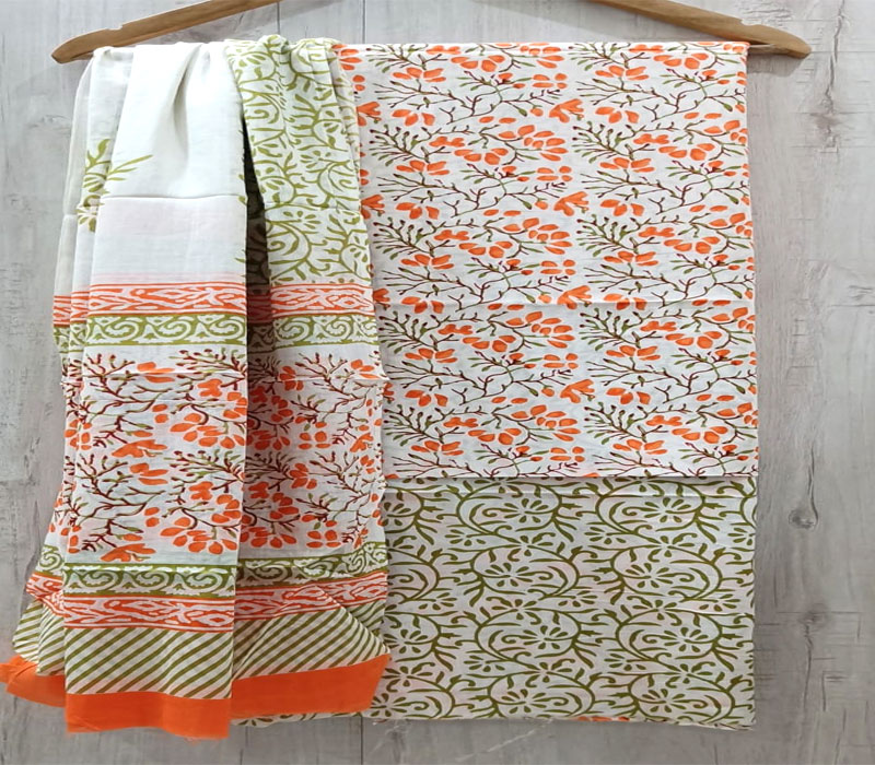 Exclusive new hand block printed cotton dress materials with cotton duptta. Top, bottom, duptta all are cotton fabrics