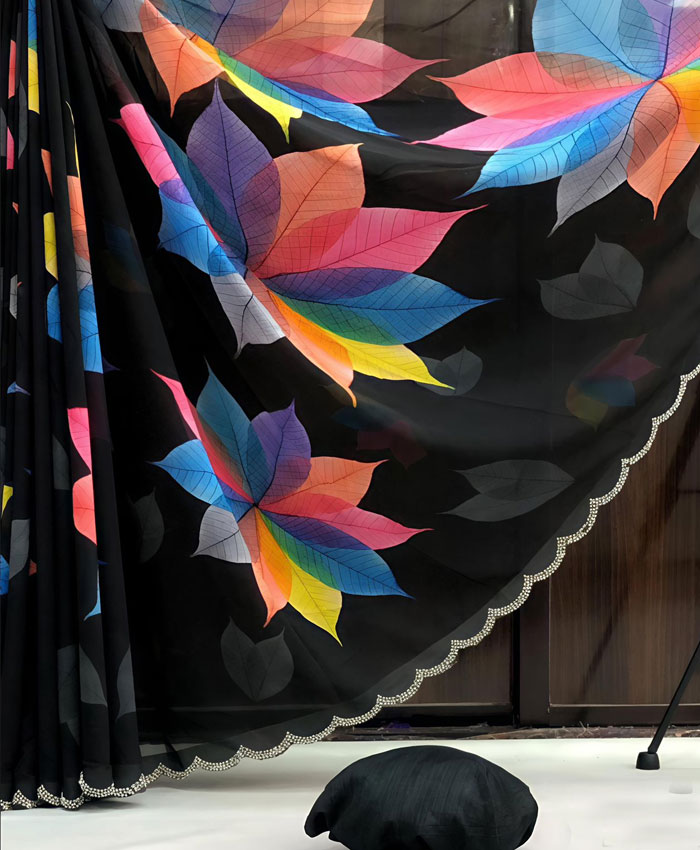 Indulge in the luxurious feel of our Soft and Smooth Marshmallow Georgette Saree, a true blend of comfort and elegance. This exquisite saree features a delicate floral digital print that adds a touch of whimsical charm, beautifully complemented by an intricately designed Swarovski stone work scalloped border. It comes complete with a perfectly matched printed blouse, making it an ideal choice for any occasion where you want to radiate grace and contemporary style.