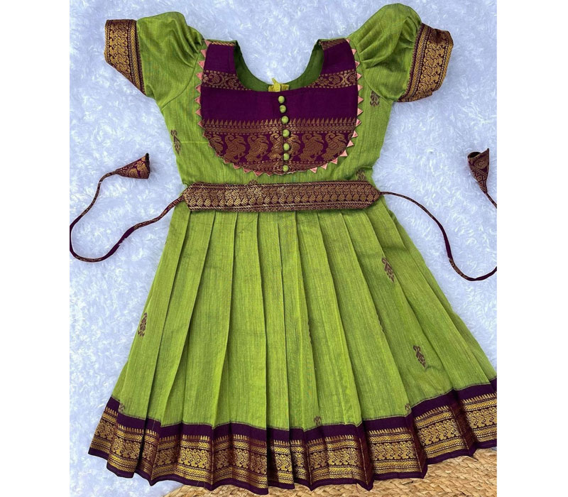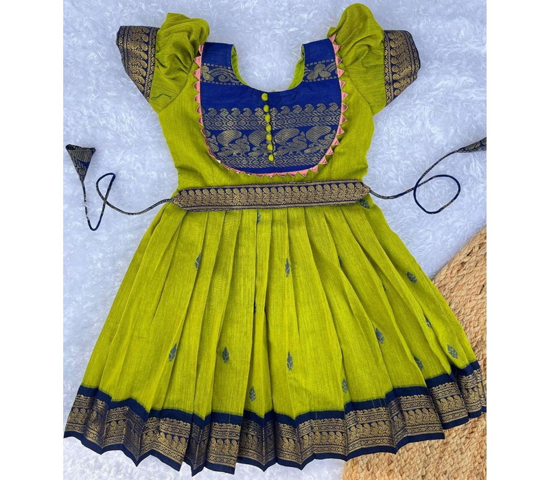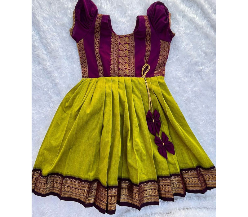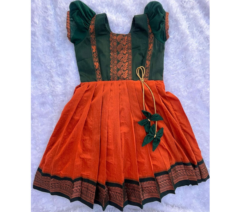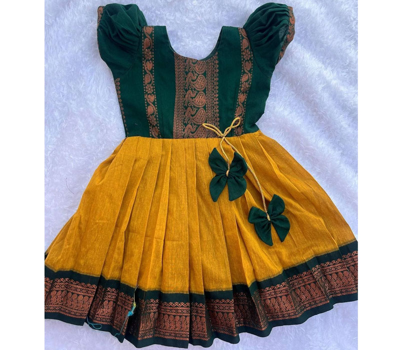 Premium Quality Kalyani Cotton Frock for Kid. Soft and feel good dress with perfect stitching with over lock. Puff sleeves with butterfly tussels