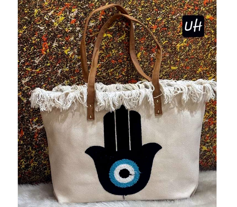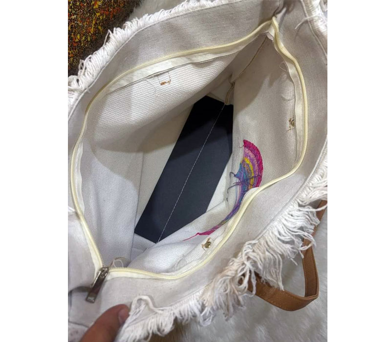 Winter Tote Bag with Hand-work on the Front side made on canvas fabric. It Can accommodate laptop and other essential things. Suitable for daily use n gifting. Size 18 x 16 inches