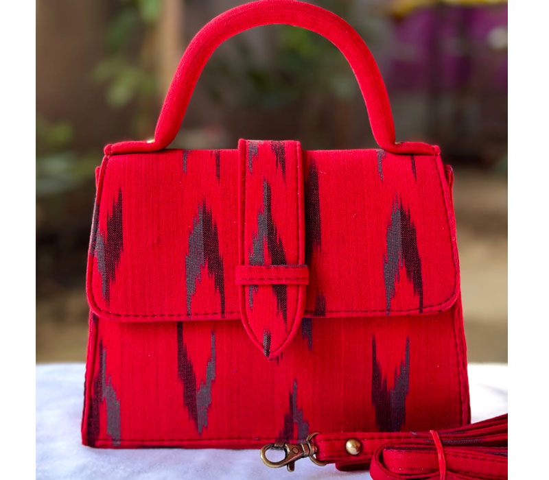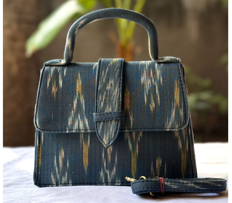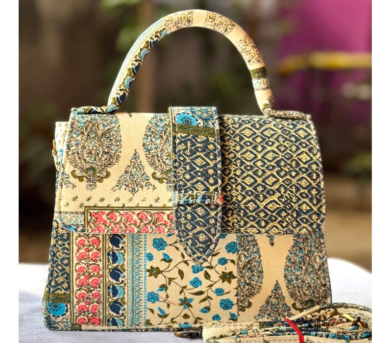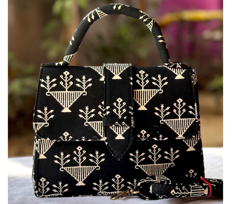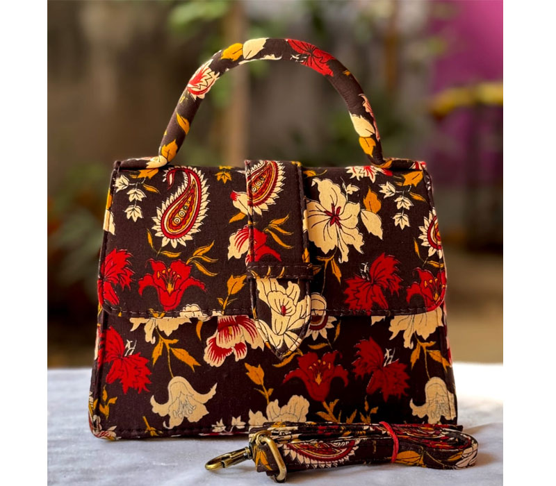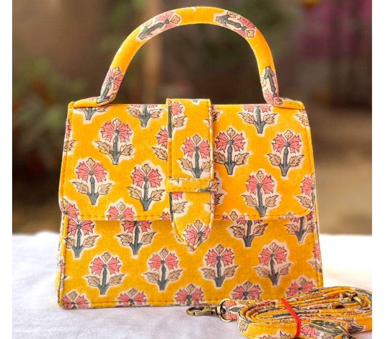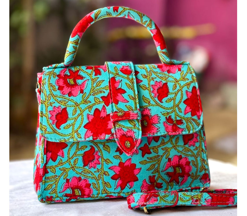 Chiq sling Motu Beautiful hand block printed cotton lining single partitioned bag with magnetic closure and high quality cotton lining inside and adjustable sling belt. Size 8"x 9"