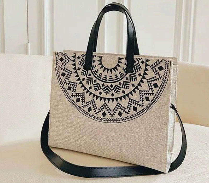 Stylish designer jute beach tote bag for women. Double side Jute material premium quality and finishing. The size of the Tote bag is 11 x 14 inches.