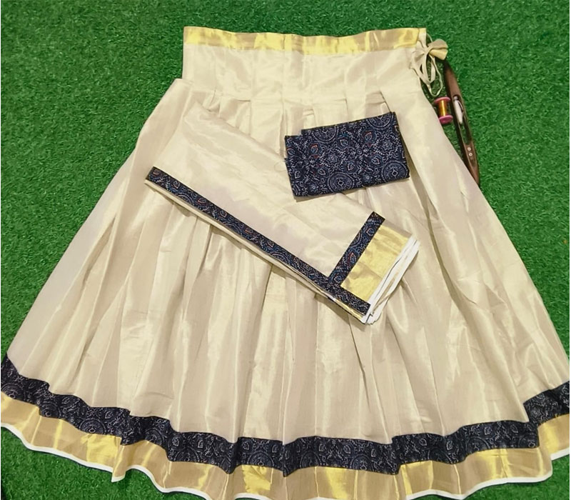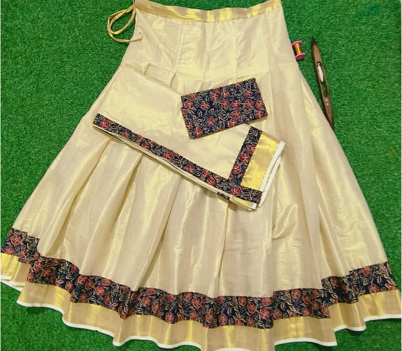 Tissue Dhavani Set with Ajrakh Print with Blouse. Skirt :3.5 mtr, Shall : 2.5 mtr, Blouse: 1 mtr