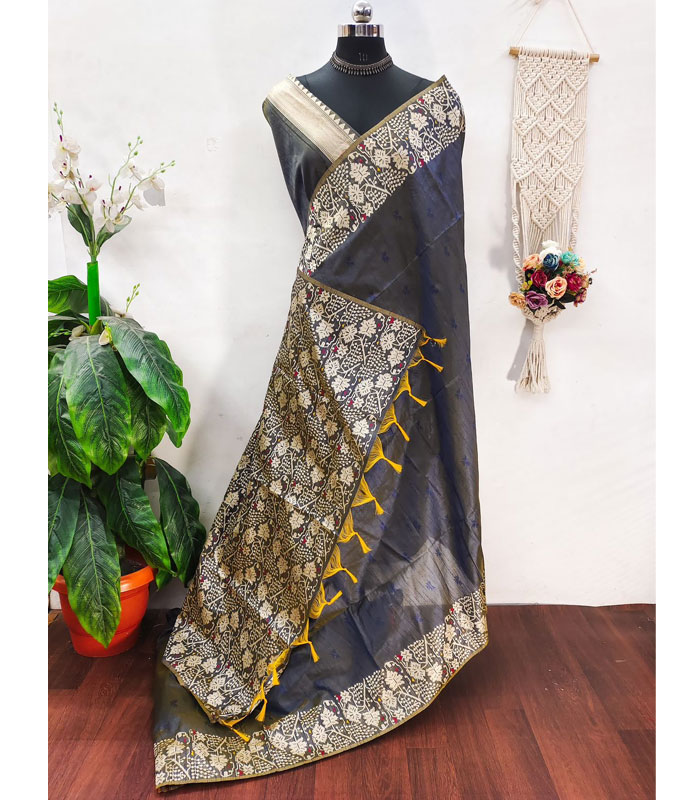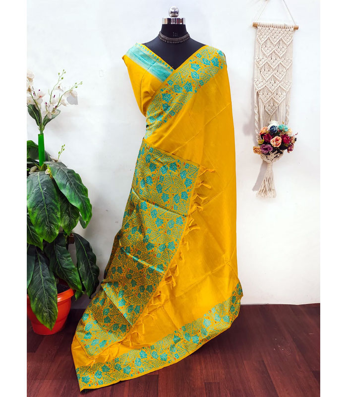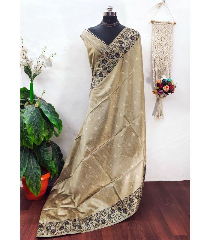 Discover timeless elegance with our Banglori Handloom Raw Silk Saree. This exquisite piece boasts a striking contrast Jamdani type weaving pallu and border, beautifully complemented by delicate all-over self-weaving buttis. A matching running blouse piece is included, completing this sophisticated ensemble perfect for any special occasion.