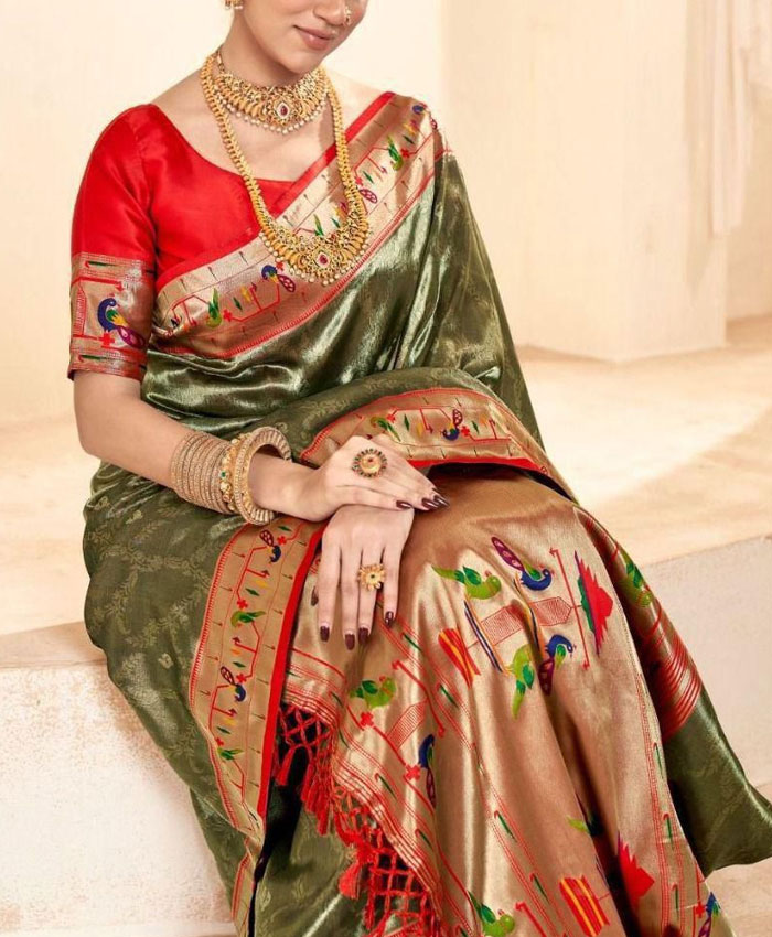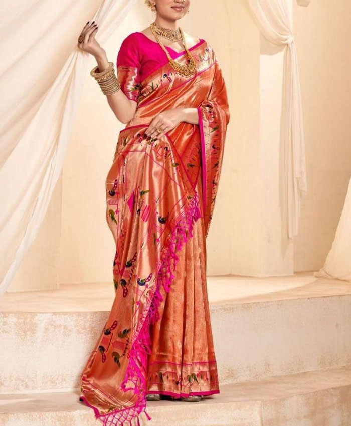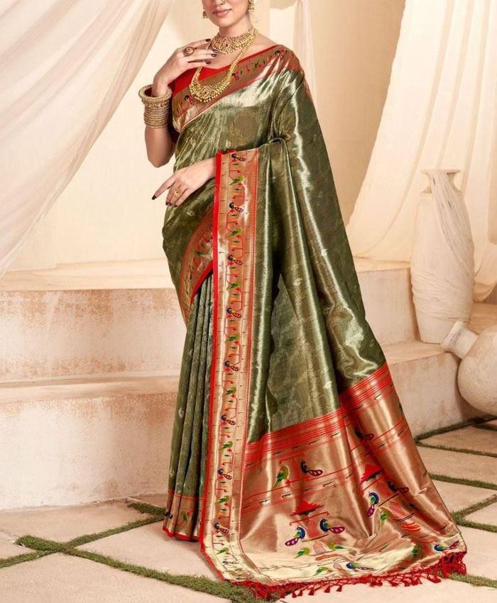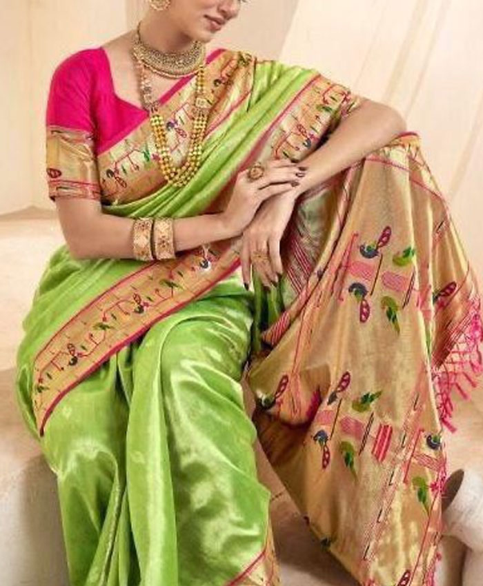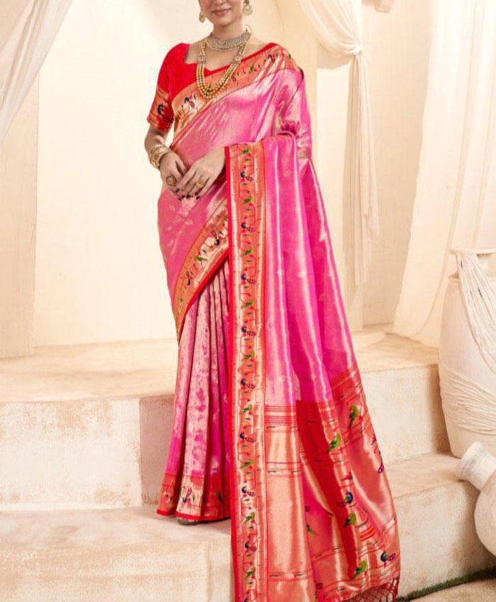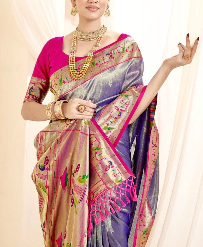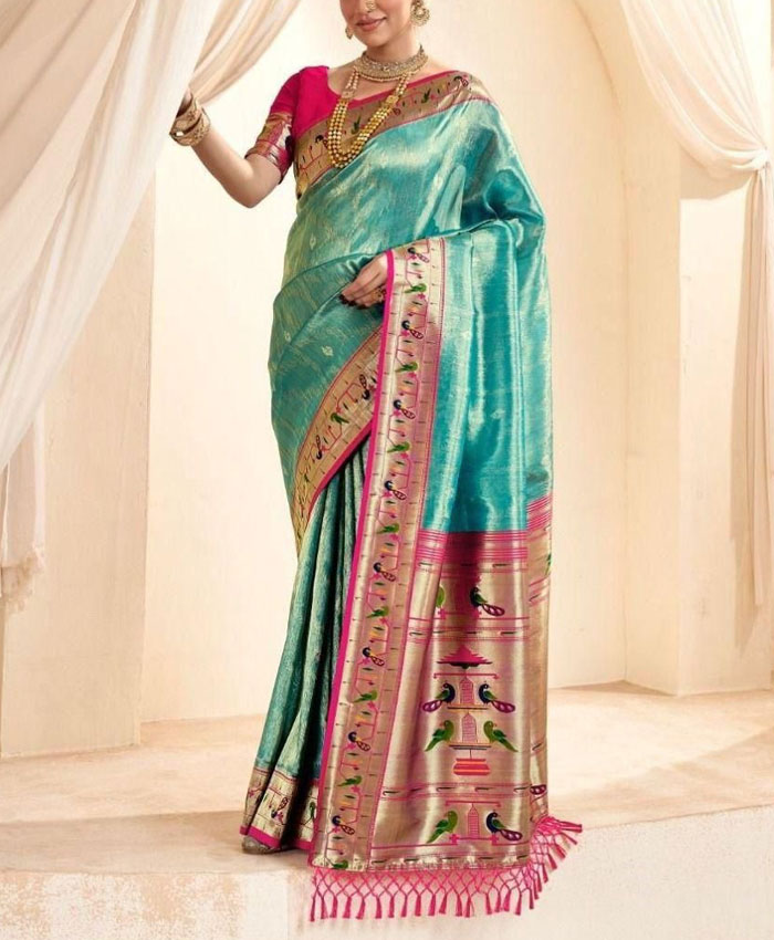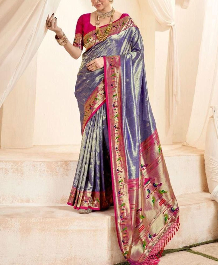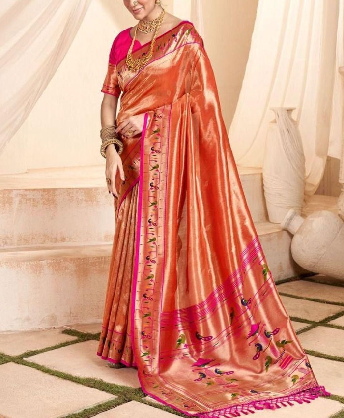 Indulge in the exquisite comfort and timeless beauty of our Luxurious Premium Tissue Paithani Saree. Made from pure soft tissue silk, this saree promises a lightweight feel and a graceful flow, ensuring you stay comfortable all day. It features a magnificent grand rich Maharani Paithani pallu and border, showcasing intricate traditional weaving that adds unparalleled richness and authenticity. Experience the ease of draping and the luxurious touch of this saree, making it an ideal choice for any discerning wearer.