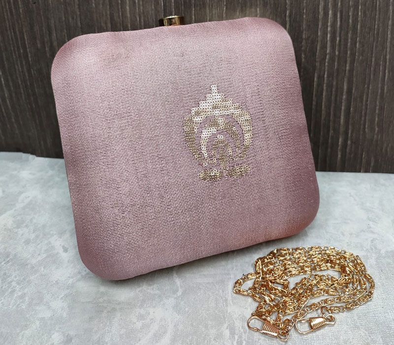 Designer Partywear Silk Clutch with Detachable chain Sling. Size : 8 * 8 inches