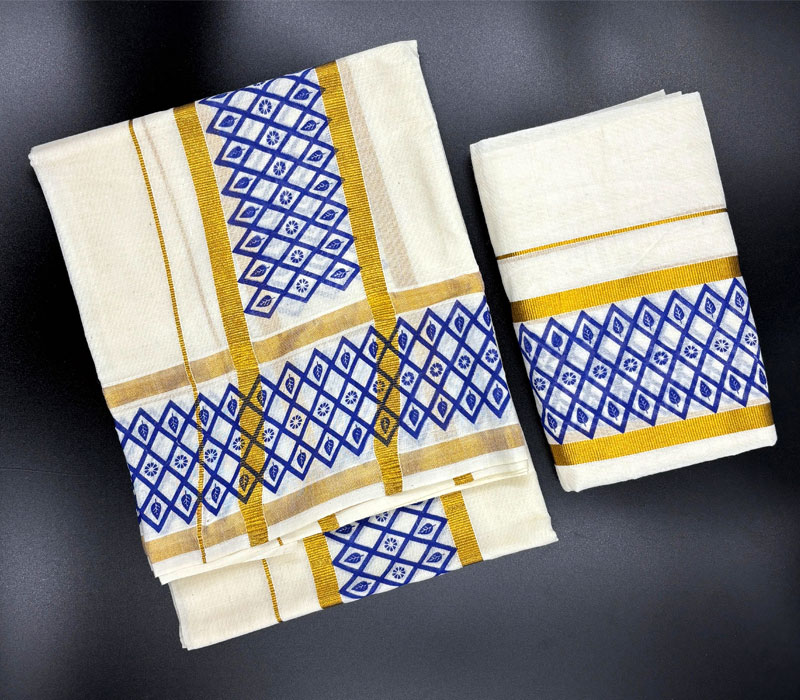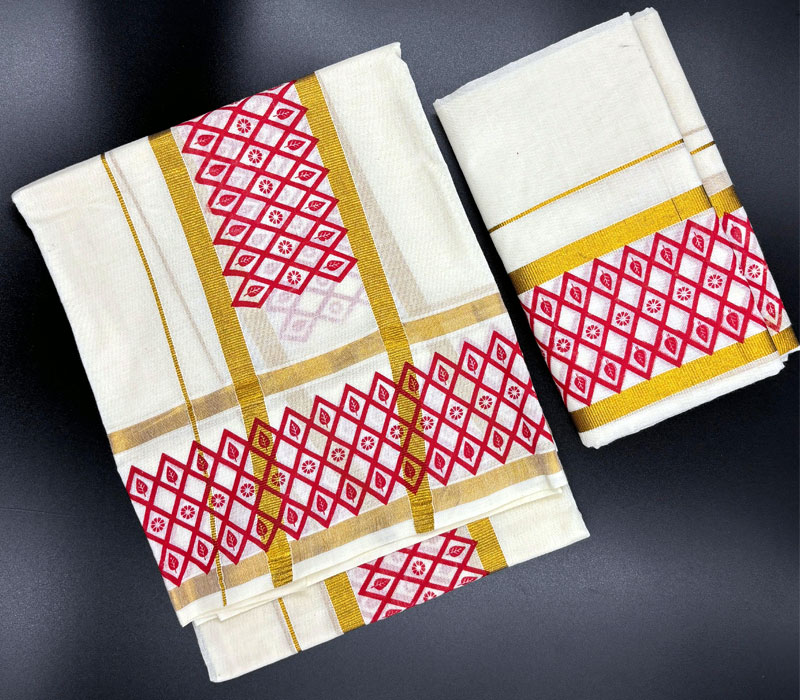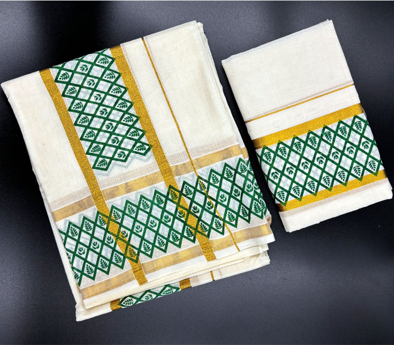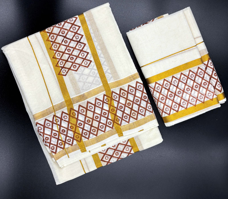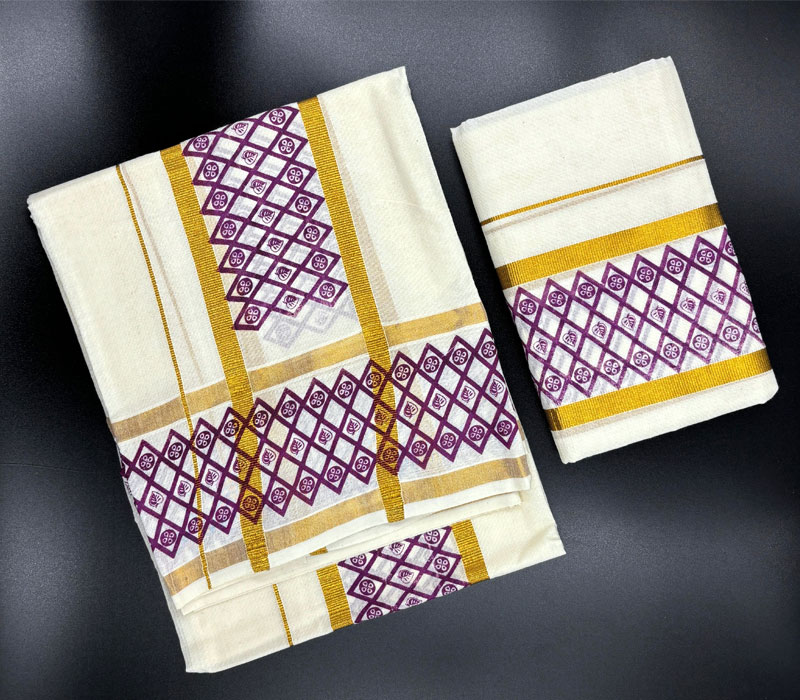Kerala Traditional Pure Cotton Setmundu from Kuthampully. Length: 2.5*2mts