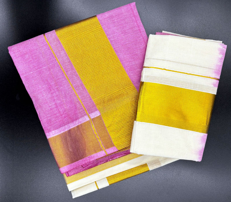Premium quality tye and dye cotton set mundu 2.80. Length:2.8 x 2 mt.